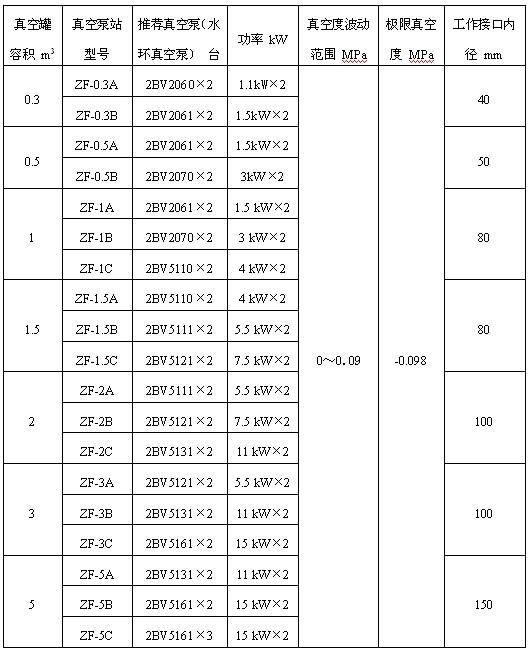 ZF系列真空泵站(又名真空發生裝置、真空負壓站等)是以一臺或二臺水環真空泵作為真空獲得設備,以真空罐作為真空存儲設備的成套系統。對于頻繁使用真空源而所需抽氣量不太大的場合下,該系統比直接使用真空泵大大節約了能源,并有效提高了真空泵的使用壽命。